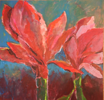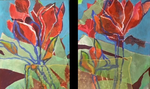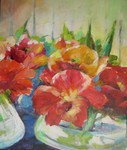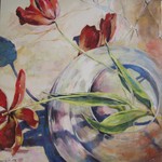 - landschapschilderijen en bloemarrangementen in acryl op doek zullen worden geexposeerd